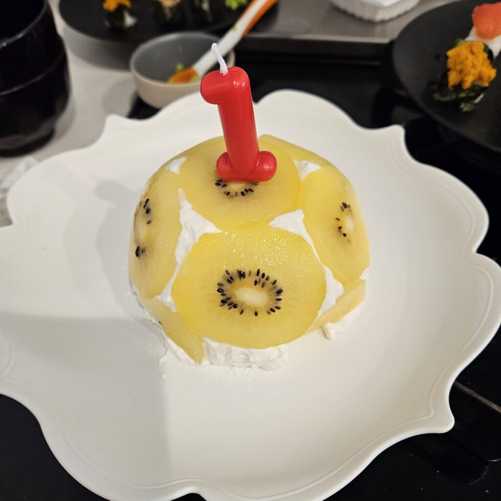 まだ大人用のケーキを食べることが出来なかったので、2人用にヨーグルトで作ったスマッシュケーキを用意しました。