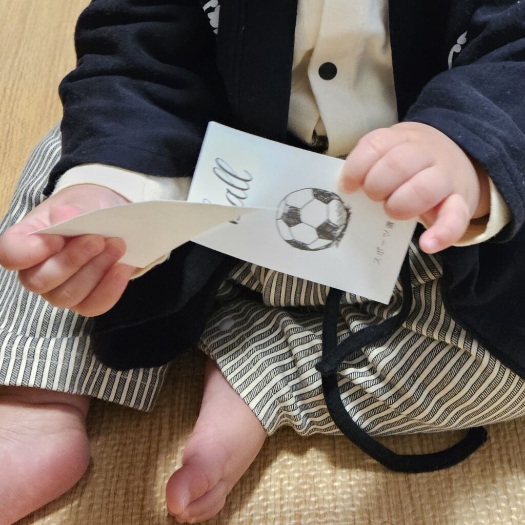 さのすけは初め「科学者」のカードを触りましたが、すぐに払いのけ、そのあとに「スポーツ選手」のカードを手に取ってまじまじと見つめていました。