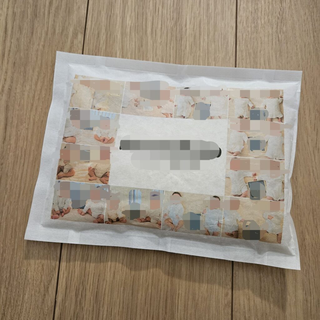 誕生日会には両家の祖父母にも来てもらっていたのですが、帰りに一升米で使ったお米をお土産として持ち帰ってもらいました。このお米の小袋には2人の1年間の写真を印刷してあったので、とても喜んで持ち帰ってくれました。